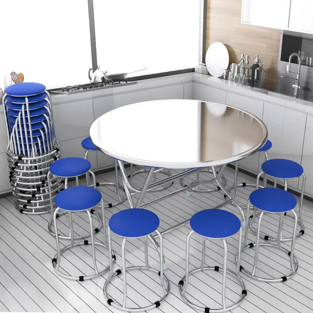 Ghế đôn inox đệm xanh có tính linh hoạt cao trong việc sử dụng. Bạn có thể đặt ghế trong phòng khách, phòng ăn, phòng làm việc hay ngay cả ngoài trời. Chất liệu inox không chỉ chống oxi hóa và chống ăn mòn, mà còn dễ dàng vệ sinh và bảo quản. Điều này giúp ghế đôn inox đệm xanh trở thành một lựa chọn lý tưởng cho cả không gian nội thất trong nhà và ngoại thất.